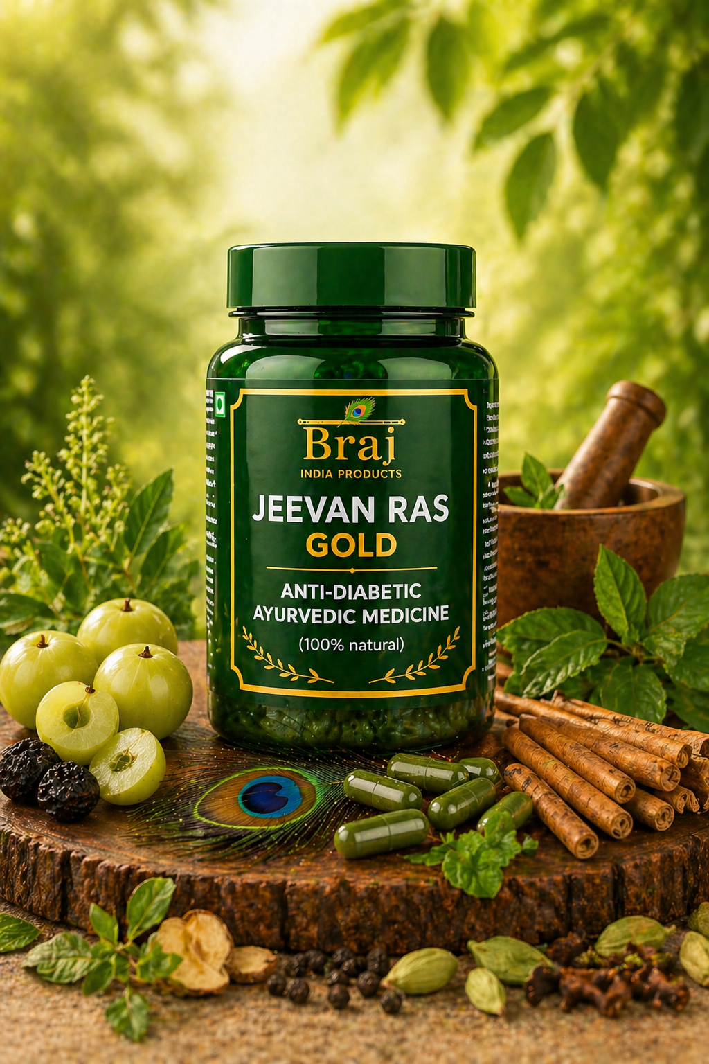 Braj Jeevan Ras Gold Capsule is a premium Ayurvedic formulation crafted using traditional herbs known for supporting blood sugar balance and overall health.